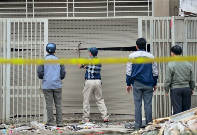 Trong khi đó, một ngôi nhà cùng dãy, cách vị trí phát nổ gần 20 m bị sức ép vụ nổ khiến cửa cuốn biến dạng, hư hỏng không thể sử dụng. Gia chủ phải phá cửa để vào nhà. |