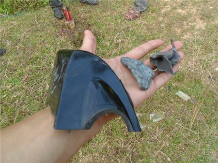 Mảnh nhựa xe máy và các mẩu sắt vụn từ nhà máy văng ra còn lại ở hiện trường. |