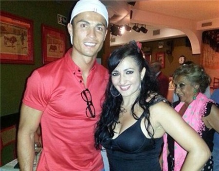Một vũ công ôm chặt Cris Ronaldo khi chụp ảnh