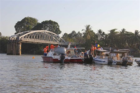 Nghi can vụ sà lan đâm sập cầu Ghềnh đã bị bắt. ảnh Linh Hoàng |