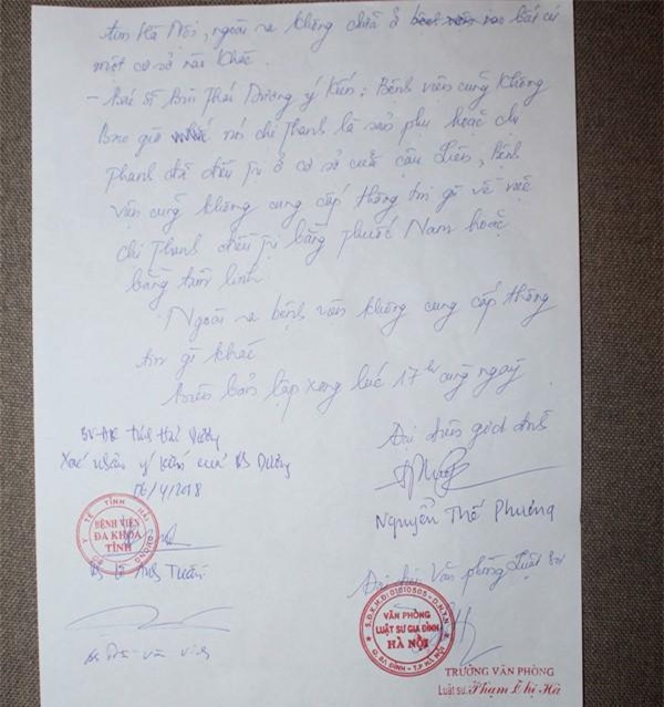 Bác sĩ Thái Dương ý kiến: Bệnh viện không bao giờ nói chị Th. là sản phụ hoặc chị Th. đã điều trị tại cơ sở của cậu Liên. Bệnh viện cũng không cung cấp thông tin gì về việc chị Th. điều trị bằng thuốc nam hoặc bằng tâm linh. Ngoài ra bệnh viện không cung cấp thông tin gì khác”.