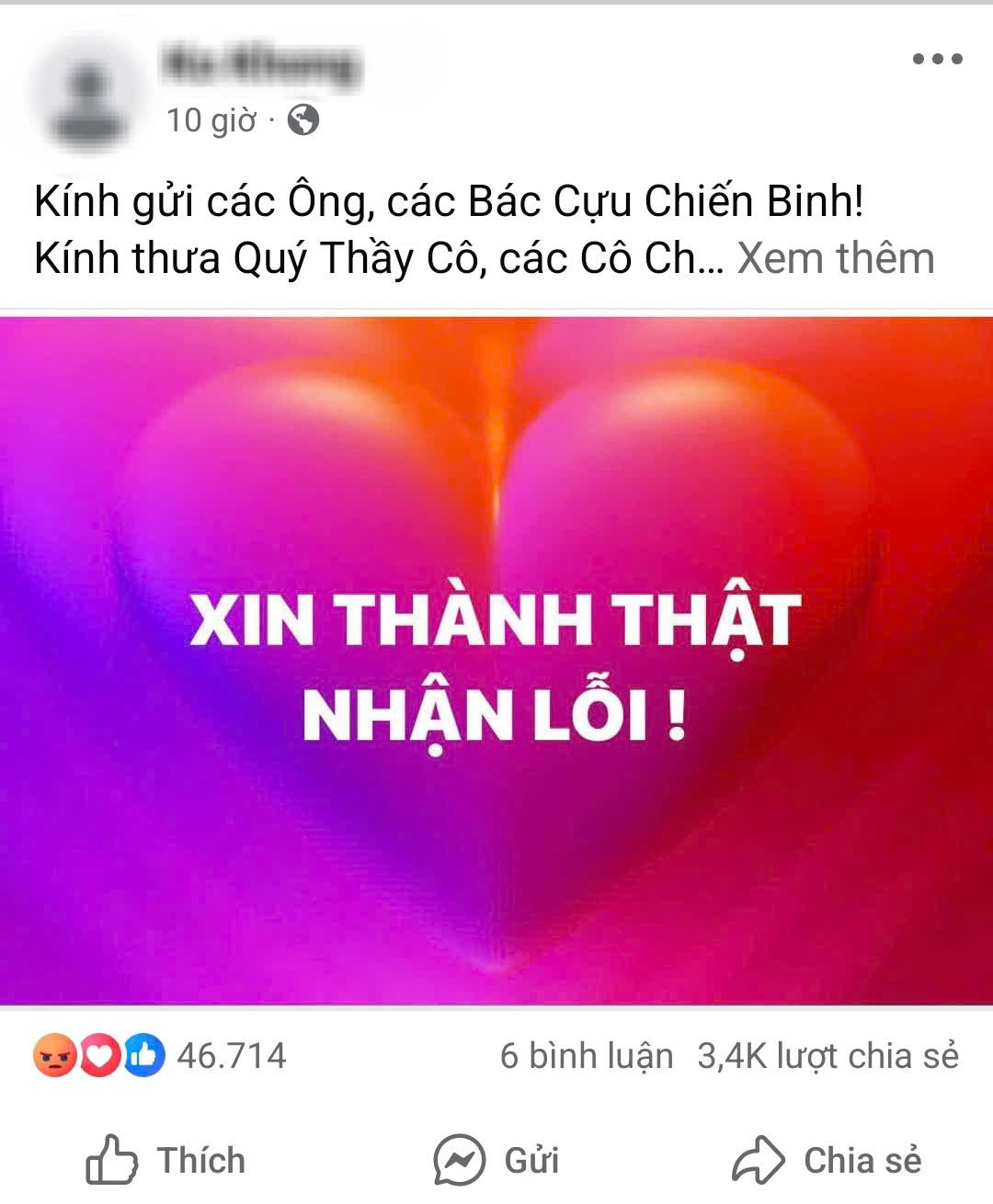 Khuya 1-5, mạng xã hội xuất hiện một bài đăng xin lỗi được cho là của sinh viên Trường ĐH Văn Lang - người đã có hành vi thiếu chuẩn mực với cựu chiến binh.