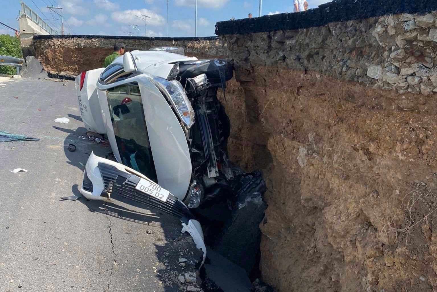 Báo cáo nhanh từ Sở Xây dựng Tây Ninh, sụt lún xảy ra lúc khoảng 4h30, khu vực đường đầu cầu phía xã Hoà Hội, với gần 40 m đường hư hỏng, sâu khoảng 3 m. Bảy người dân đi vào nơi sụt lún bị thương (4 người đi ôtô, 3 người đi hai xe máy).