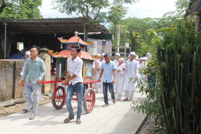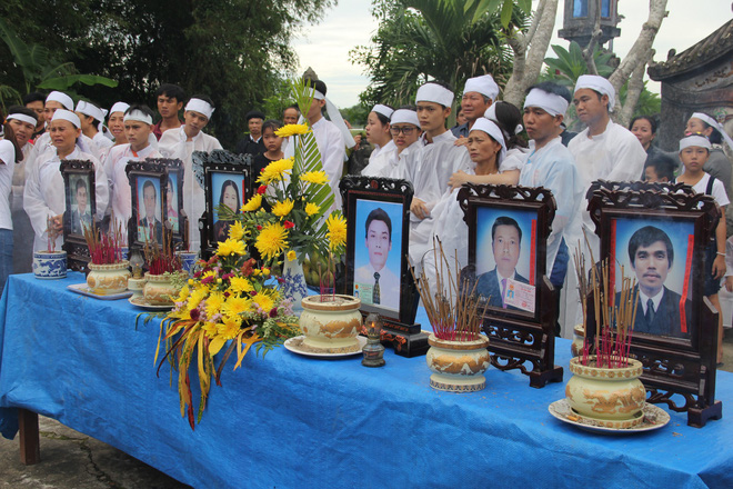 Bài vị của những người tử nạn trong họ Nguyễn Khắc được đặt ngay ngắn trên những chiếc bàn ở giữa sân từ đường. Người thân các nạn nhân trong bộ tang phục màu trắng tiến hành các nghi lễ yết tổ theo hướng dẫn của các vị bô lão trong làng.