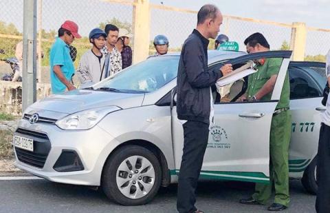 Công an khám nghiệm hiện trường và chiếc taxi có tài xế nghi bị khách cứa cổ.
