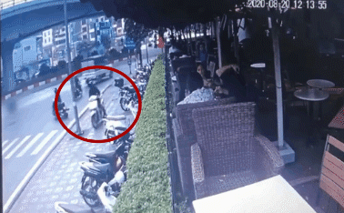 Một tên đứng canh chừng, tên còn lại tìm cách trộm chiếc xe máy SH. Tên này nhanh chóng phá khóa cổ của chiếc xe trong khi xung quanh không ai để ý. Chỉ đến khi tên trộm lên xe bỏ chạy, chủ nhân chiếc SH mới vội vàng chạy theo.