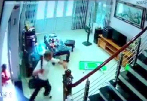 Hình ảnh đối tượng Bình tấn công nạn nhân (ảnh cắt từ clip).