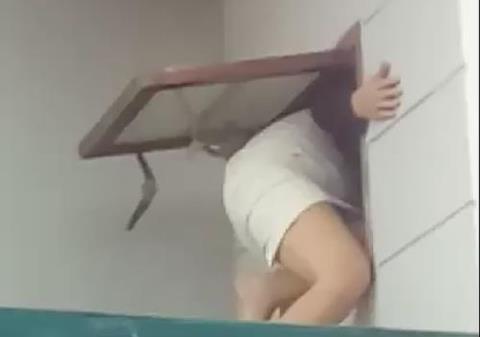 Bà M. giải trình chui cửa thông gió ra ngoài để nhặt điện thoại.