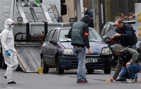 Các nhà điều tra có mặt tại hiện trường vụ nổ súng thứ 2 tại Paris hôm nay. |