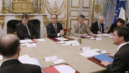 Tổng thống Pháp Francois Hollande triệu tập phiên họp nội các khẩn cấp ngay sau vụ tấn công tạp chí Charlie Hebdo. |