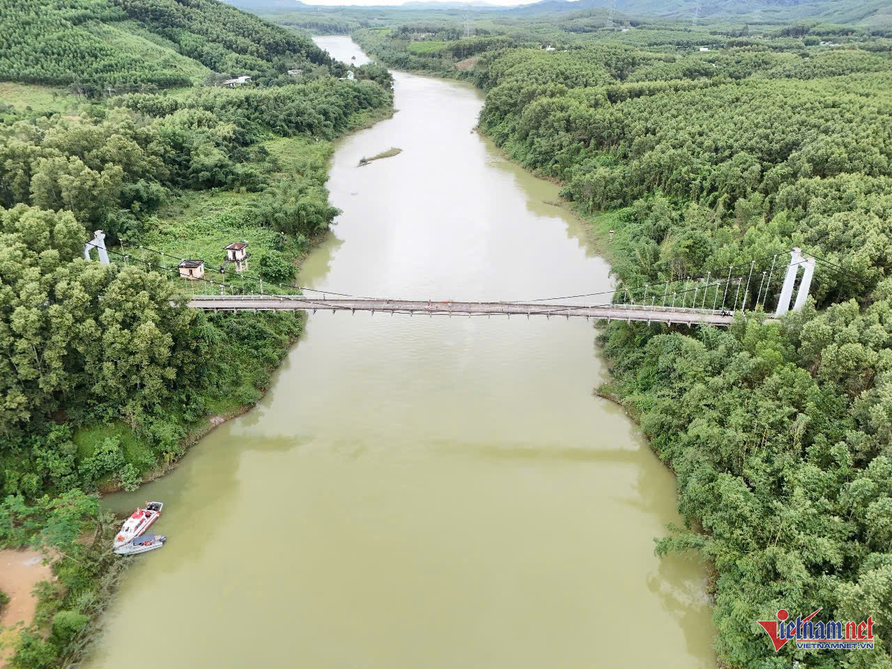 Cầu treo Bình Thành, nơi 2 nạn nhân mất tích. Ảnh: QT
