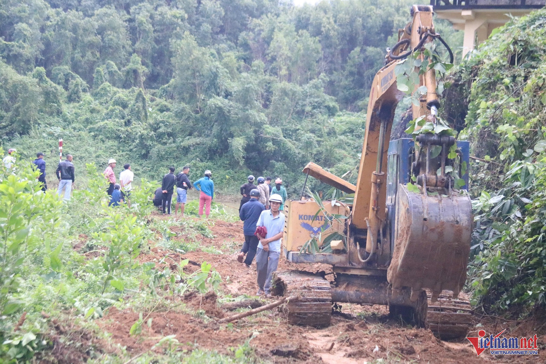 Lực lượng chức năng mở đường vào cứu hộ, cứu nạn. Ảnh: QT