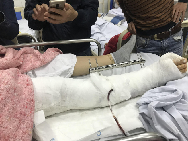 Phần chân của chị H bị gãy và có vết thương hở nên chị cảm thấy rất đau đớn.