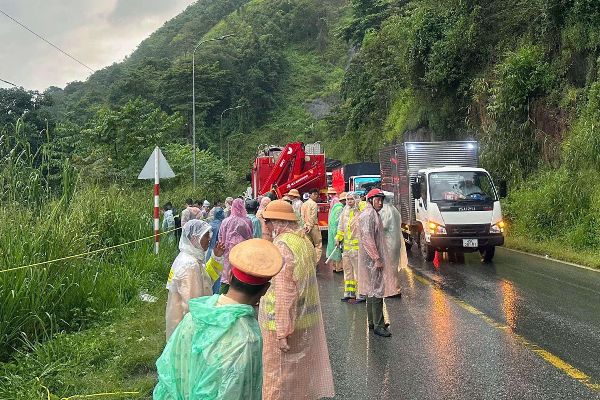 Hiện trường ô tô rơi xuống vực đèo Bảo Lộc. Ảnh: X.N