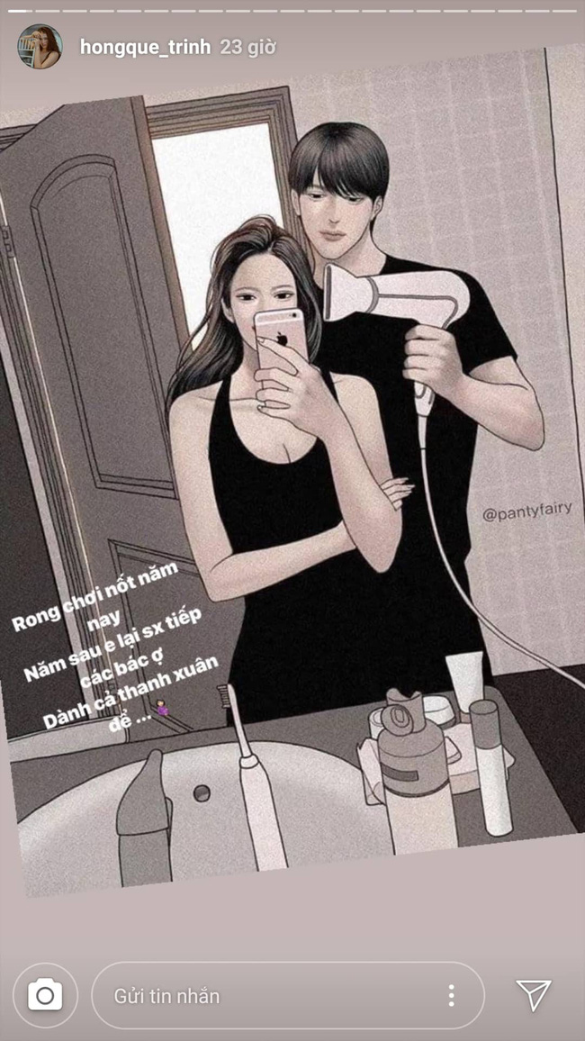 Nguyên nhân là cô đăng tải lên instagram một dòng trạng thái mới với nội dung như sau: "Rong chơi nốt năm nay. Năm sau em lại sản xuất tiếp các bác ợ. Dành cả thanh xuân để...", kèm theo đó là "icon" một người phụ nữ ẵm em bé với ngụ ý chuyện sinh nở.