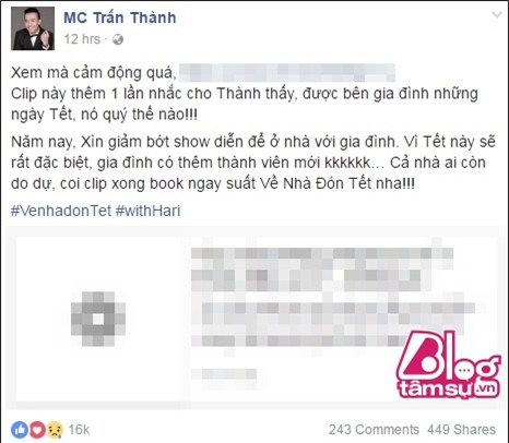 Trong status trước đó, người đẹp sinh năm 1985 thoải mái “đá xoáy” chồng không phải “mỹ nam” như trong bài báo mà cô chia sẻ. Về phía Trấn Thành, nam MC cũng mới đăng status thể hiện sự háo hức trong dịp Tết sắp tới vì gia đình có thành viên mới – vợ của anh, Hari Won.