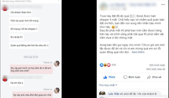 “Hôm ấy chẳng hiểu sao mình đặt đồ trên một tiệm với giá đắt lại đông người. Bạn shipper đến nơi liền hài hước thông báo: “Chị khách thân kính. Hiện tại quán có hơn 60 mạng (bé shipper). Em là bé thứ 61, quán quá đông nên hơi lâu nhé chị”. Sau đó, 45 phút sau bạn ấy mới cầm được hàng trên tay và mình cũng phải trải qua từng ấy thời gian nằm vật vì đói chóng mặt”, Lục Nguyệt kể.