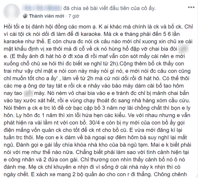 Nhưng câu chuyện cũng chưa phải chỉ có thế, trước đó thì hai người đã ly hôn vì anh chồng ngoại tình, nợ lãi nhiều, thế nhưng 1 năm sau ly hôn, anh chồng năn nỉ vợ quay lại thì cô gái lại mềm lòng. Và đấy cũng chính là khởi nguồn của những nỗi đau mà cô gái trẻ đang phải hứng chịu.