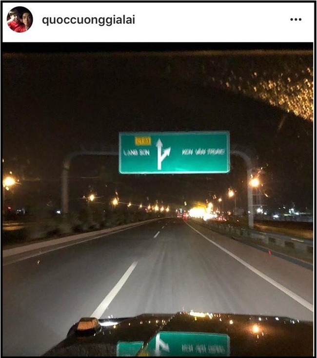 Cường Đôla chia sẻ hình ảnh đang trên đường tới Lạng Sơn lên trang cá nhân Instagram.