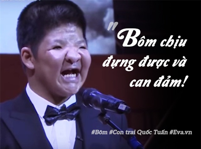Dù mắc phải căn bệnh hiếm gặp - hội chứng Apert (bệnh xương cứng sớm cục bộ), hẹp đường thở ngay từ lúc mới sinh ra và có khuôn mặt không lành lặn như nhiều bạn nhỏ nhưng Bôm không tự ti, khép kín, ngược lại là cậu bé khá vui vẻ và hay cười. Nay đã 15 tuổi, con trai Quốc Tuấn tỏ ra rất người lớn và còn biết ăn nói rất dí dỏm. Ở nhà, hai bố con đùa và nói chuyện nhau như 2 người đàn ông.