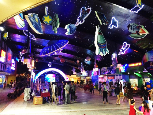 Du khách như lạc vào vũ trụ với hàng trăm vật thể, tàu vũ trụ, đĩa bay, hành tinh vây quanh