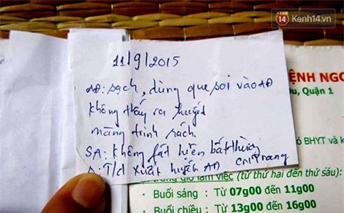 viết tay được đính kèm vào cuốn sổ khám bệnh của Bệnh viện Đa khoa