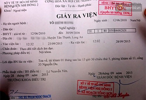 Giấy ra viện ngày 28/9/2015 |