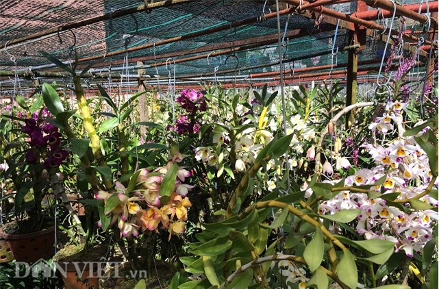 " Đi khá nhiều nơi để sưu tầm các loại lan rừng về thuần hóa. Hiện tại với khu vườn 200m2 của mình, tôi treo trên 2.000 chậu lan lớn nhỏ, treo trên cao, ở giữa và cả dưới đất với rất nhiều chủng loại, ước tính giá trị lên đến khoảng 500 triệu đồng", ông Bình thông tin.