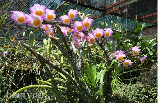 Giò lan chuỗi ngọc Điện Biên đang khoe sắc dưới nắng vàng, ông Bình cho biết giò lan này được một người bạn tặng khi ông có dịp ra Hà Nội chơi.