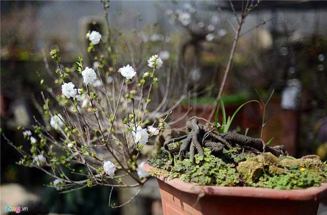 Những gốc xù xì thế đẹp sẽ được rao bán đắt hơn. Người sành chơi thường chọn cây thân đen, phía trên cành hoa nở trắng và nhiều nụ. |