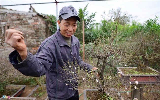 Để tạo ra những cây mai có hoa đẹp và dáng độc, anh Dũng tìm mua giống từ Hòa Binh, Thái Bình... |