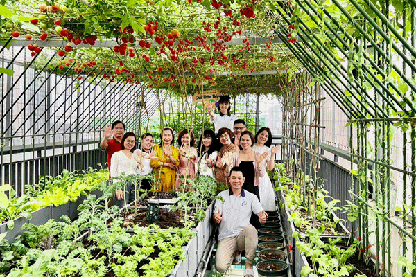 Ông bố ở Hà Nội chi nửa tỷ đồng làm vườn rau sân thượng