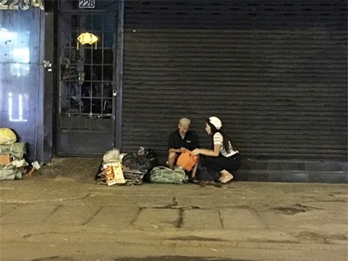 Những phần quà nhỏ được cô trao tận tay cho những người vô gia cư