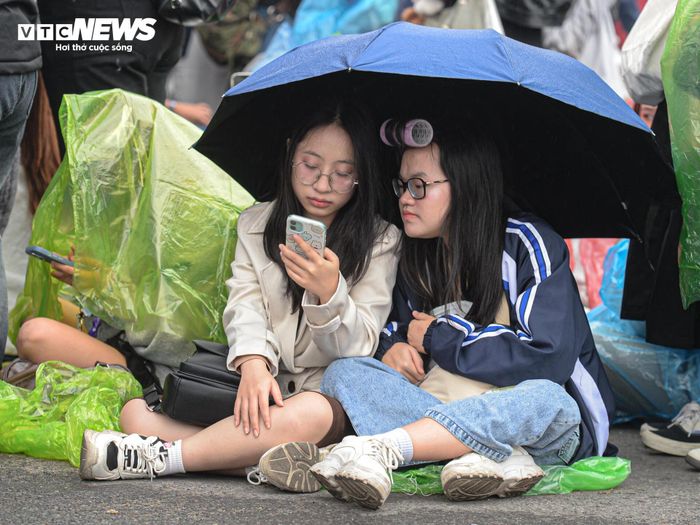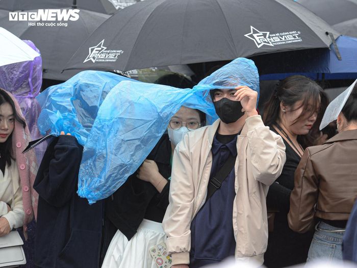 Do thời tiết sáng nay mưa rét nên nhiều người mặc áo mưa, mang ô trong khi chờ xem Concert 3 của "Anh trai say hi".