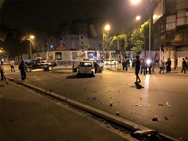 Một nhân chứng cho hay, chiếc Kia K3 màu đỏ lưu thông trên phố Hàng Bài hướng về hồ Gươm với tốc độ cao. Tới nút giao phố Hai Bà Trưng ôtô này tông trực diện chiếc taxi lưu thông hướng Hai Bà Trưng - Hàng Bài.