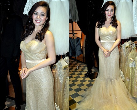 | Chiếc váy có điểm nhấn tại phần cúp ngực khá diêm dúa. |