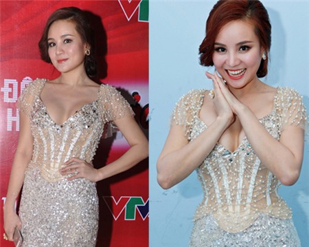 Vy Oanh theo đuổi phong cách nữ tính vì thế rất dễ sa vào những chi tiết sến sẩm, cô nên theo một gu thời trang thống nhất là hiện đại hoặc cổ điển. Màu sắc trang phục cũng cần đơn giản, tránh chọn nhiều gam màu. Đầm dài cũng là nguyên nhân khiến Vy Oanh mất điểm.