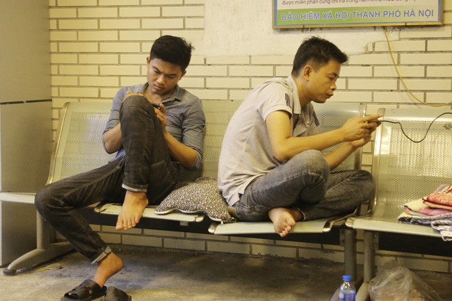 Biết trước điều này, nhiều người mang theo ghế nhựa từ phòng bệnh của mình để ngồi xem bóng cho thoải mái.