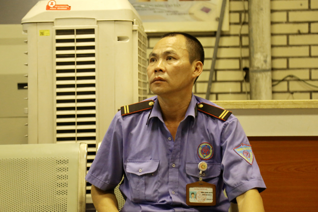 Bảo vệ bệnh viện nhân lúc thay ca cũng ra ngồi xem bóng đá cùng mọi người.