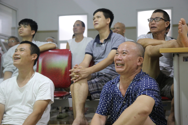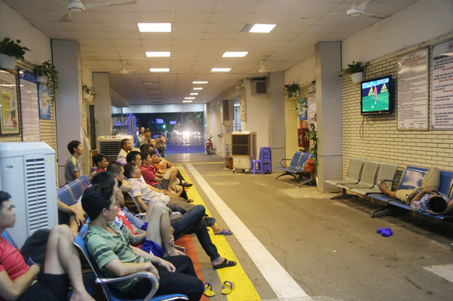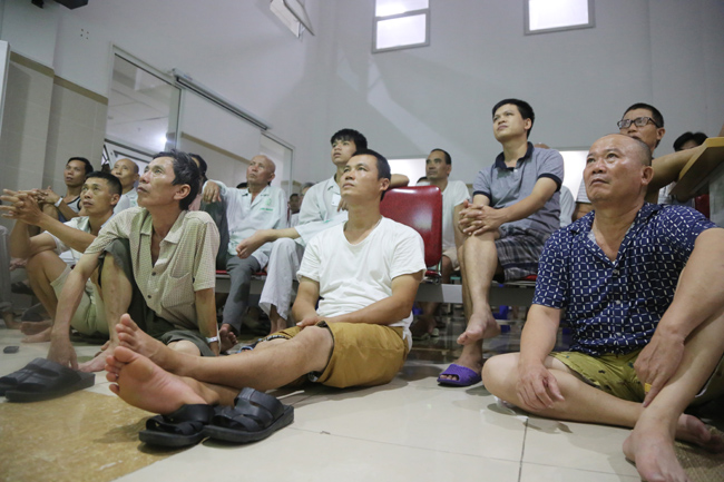 Tại bệnh viện Bạch Mai cũng vậy. Từ 19h các bệnh nhân cùng người nhà lại rủ nhau tụ tập đông đúc ở sảnh tầng 11, nơi có chiếc tivi màn hình lớn, để cùng nhau cổ vũ bóng đá.