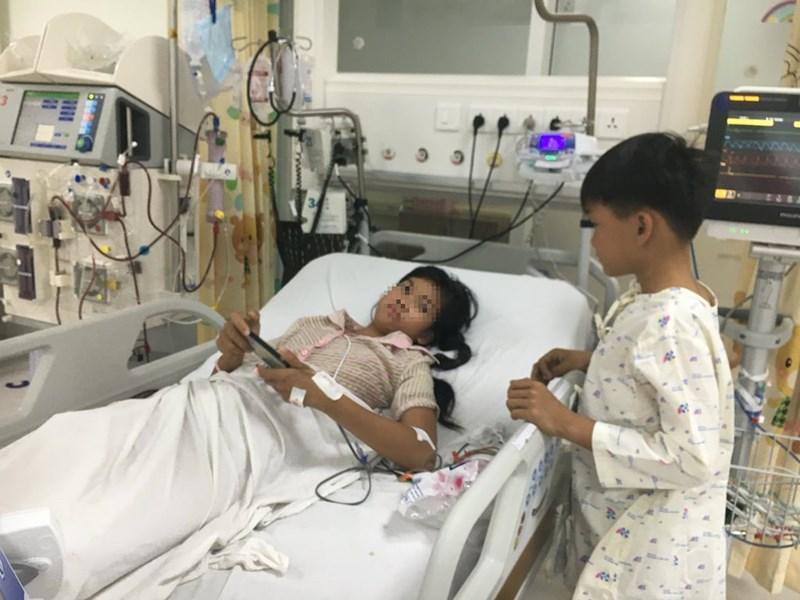 Hai chị em đang được chăm sóc tại khoa Hồi sức tích cực chống độc BV Nhi đồng TP (Bình Chánh, TP.HCM). Ảnh: HL
