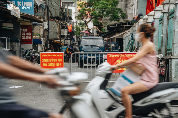 2 mẹ con ở Hà Nội dương tính SARS-CoV-2 dù 1 tháng nay không đi đâu xa, thiết lập 5 chốt phong tỏa-3Trong ngõ Quỳnh, hướng sang ngõ Trại Găng được thiết lập 3 chốt. Cán bộ trực chốt yêu cầu người dân dừng phương tiện, hỏi rõ thông tin nếu muốn di chuyển vào trong