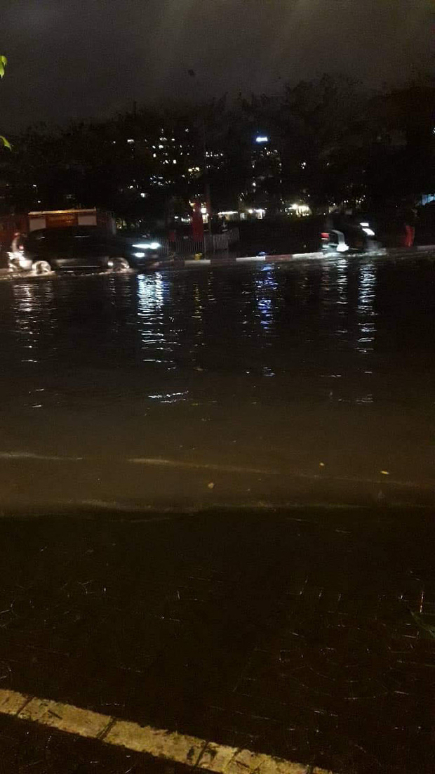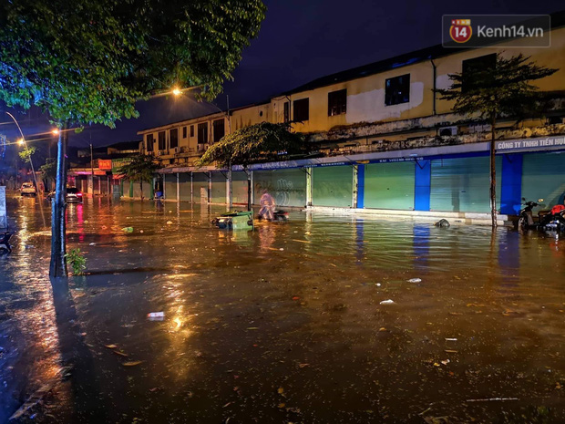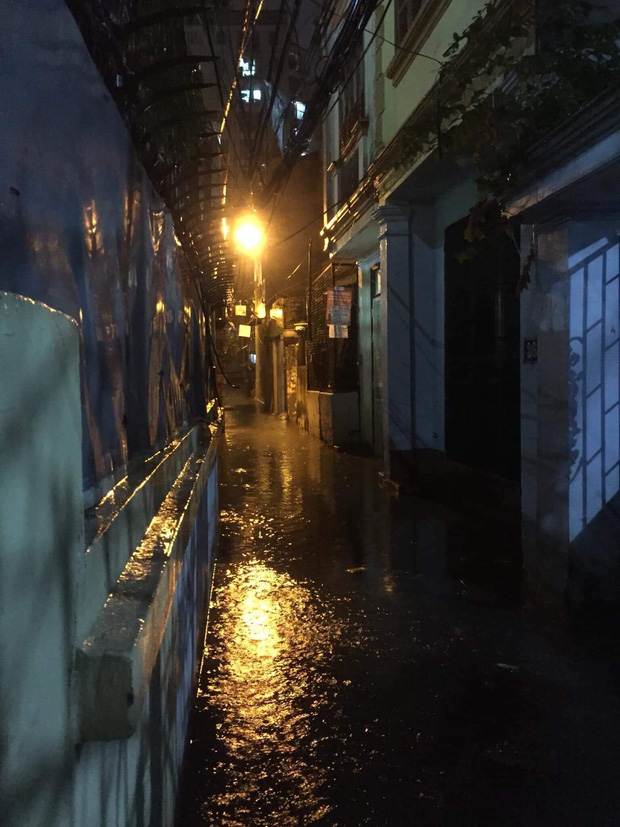 Cả tuyến phố vắng vẻ, nhìn đâu cũng thấy nước sau trận mưa lớn kinh hoàng