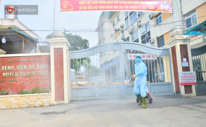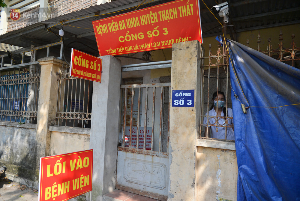 Theo ghi nhận của chúng tôi vào chiều 21/5, Bệnh viện Đa khoa huyện Thạch Thất đã tạm thời đóng cửa, dừng tiếp nhận bệnh nhân từ bên ngoài vào