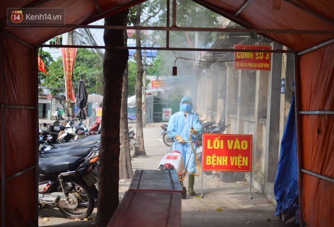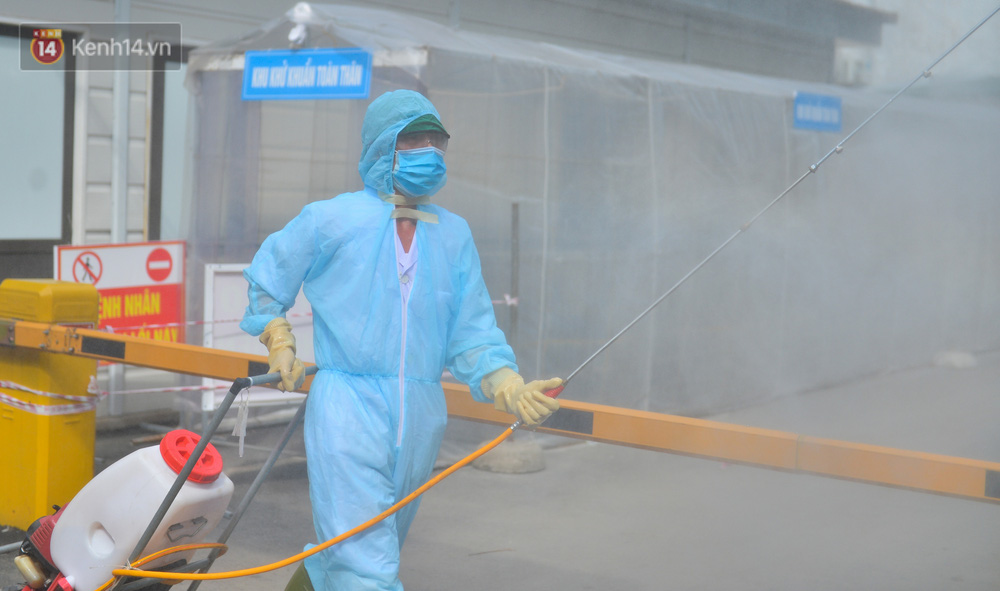Buồng khử khuẩn được dựng sau cổng bệnh viện