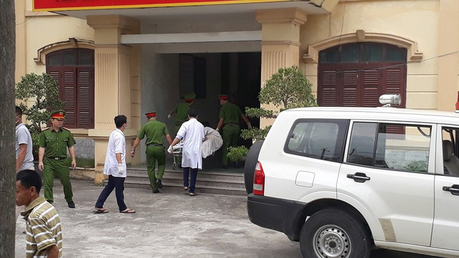Sau khoảng 30 phút làm việc và thuyết phục, bị cáo Hùng được công an cùng các nhân viên y tế khiêng trên cáng để đưa tới tòa.