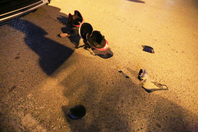 Mũ bảo hiểm của các nạn nhân tại hiện trường.