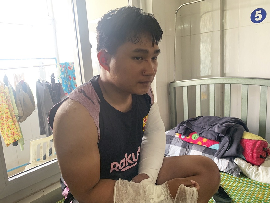 Anh Đạt đang được điều trị tại Bệnh viện Quân y C17 Đà Nẵng. Ảnh: Gia đình cung cấp.