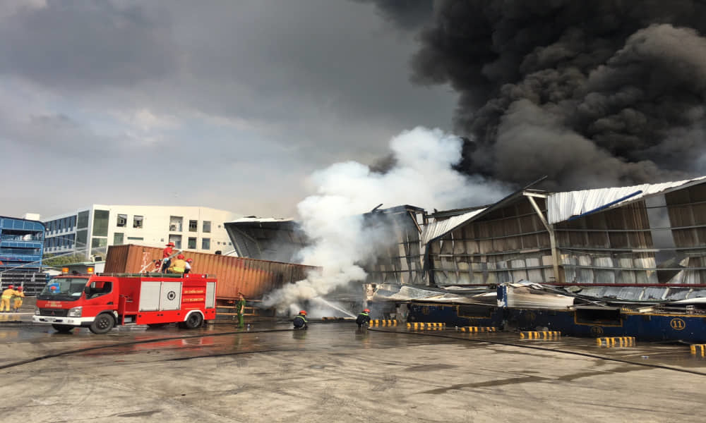 Chỉ ít phút sau, ngọn lửa bốc lên ngùn ngụt kèm theo nhiều tiếng nổ lớn, cột khói đen bốc cao hàng chục mét, bao trùm một số công ty gần khu vực. Các công nhân phải hô hoán nhau bỏ chạy thoát thân.