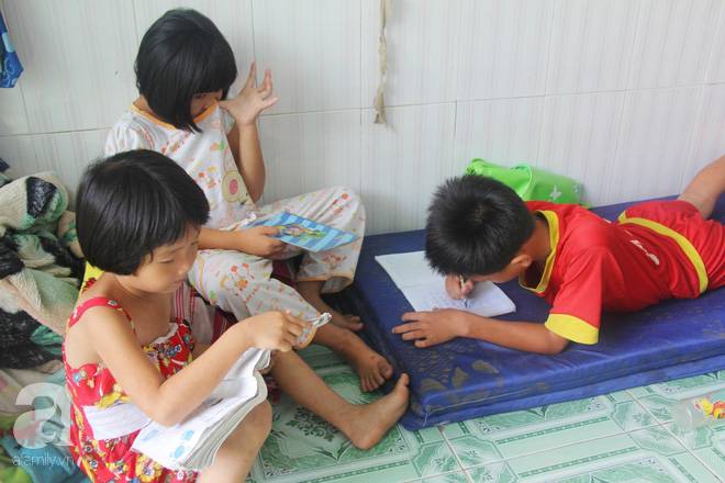 Trong số những đứa cháu ở nhà, chỉ có duy nhất bé My (9 tuổi) và Bin (10 tuổi) là xin học được ở một lớp tình thương gần khu trọ. Những đứa trẻ còn lại đều không có điều kiện để đến trường.